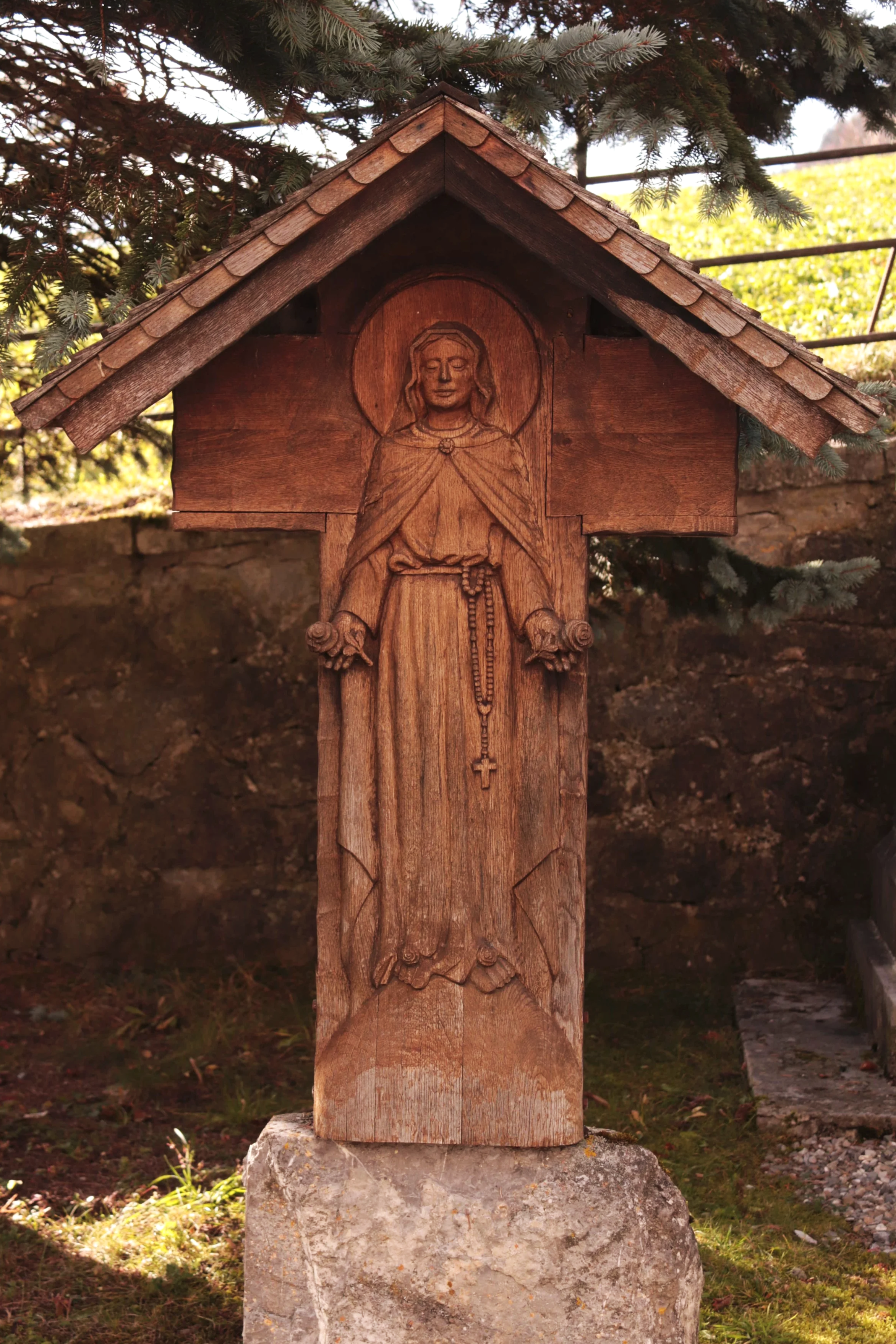 Sculptures de stèles sur bois massif résistant aux intempéries.