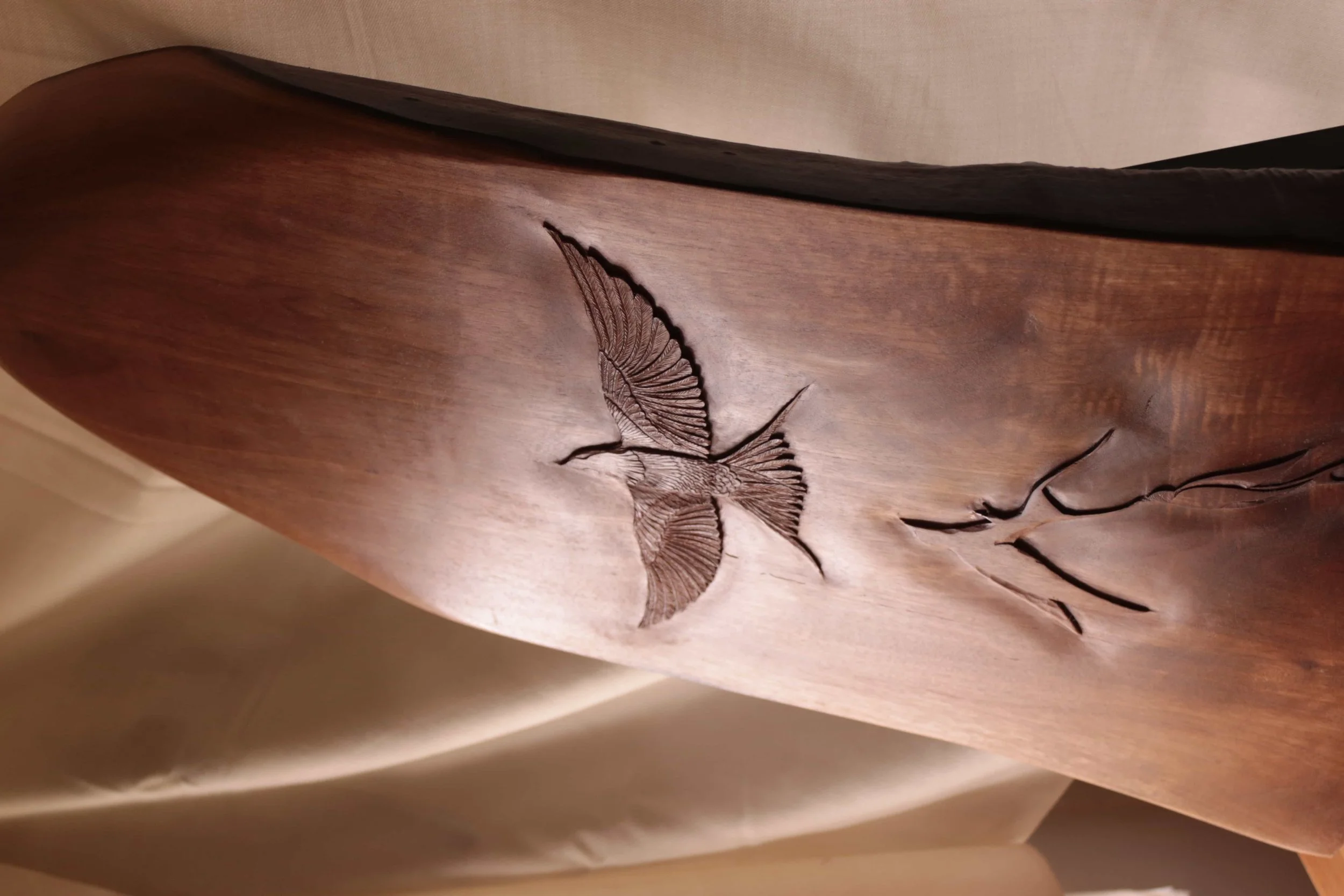 Sculpteur de monuments funéraires en bois, je travaille main dans la main avec les familles et les proches, pour mettre au monde une stèle représentative de la personne qui nous a quittés.