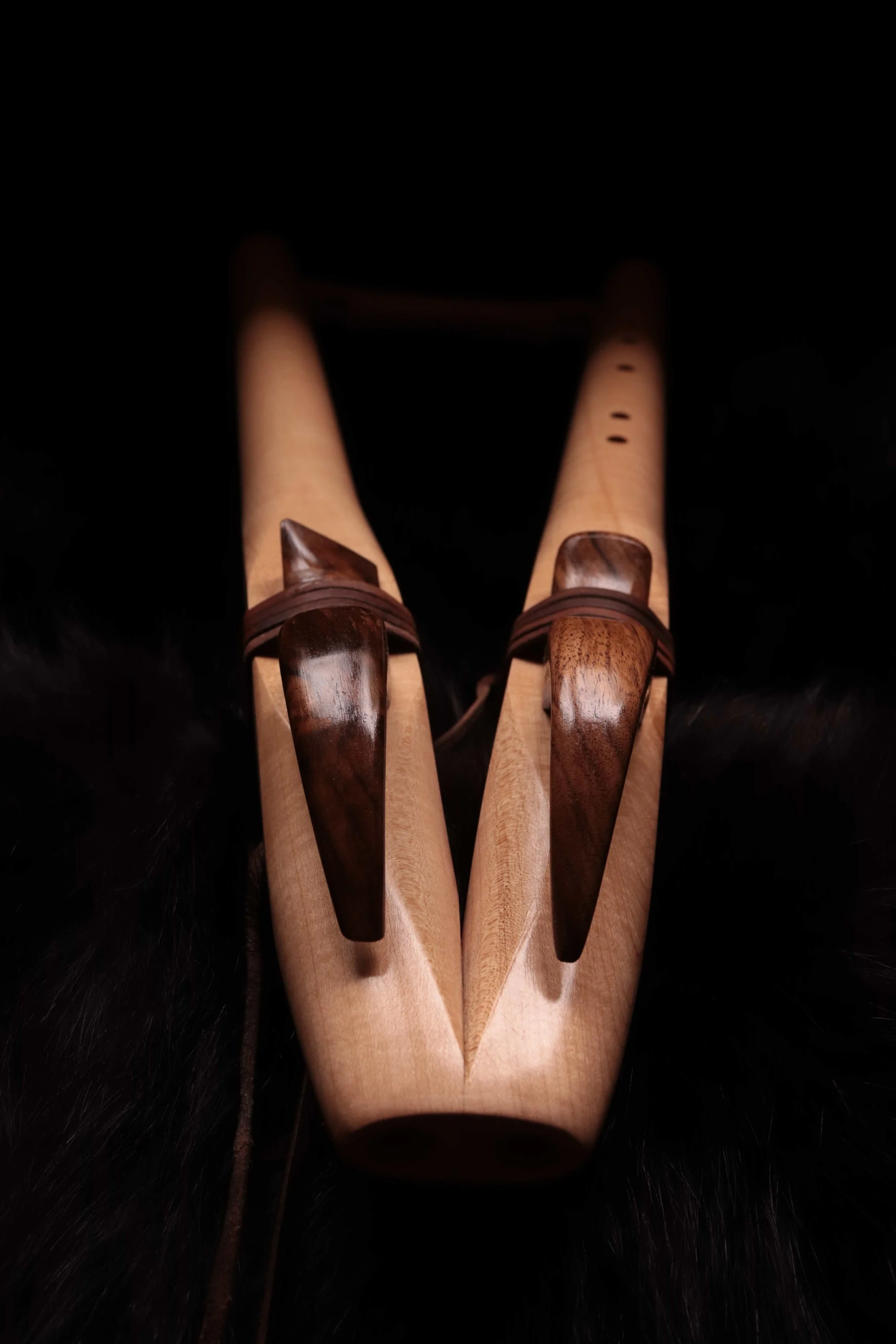 Dans ce modèle, les deux flûtes sont façonnées dans une seule pièce de bois, produisant ainsi une mélodie majestueuse et mystique, fruit de l'harmonie de leurs sons.